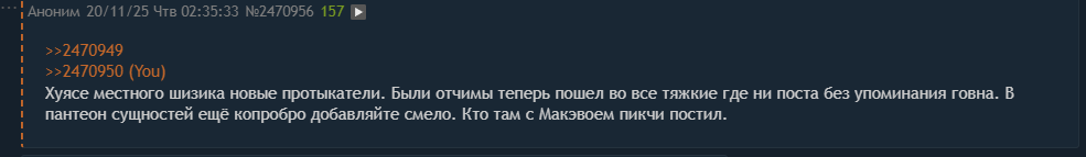 >>2470949 >>2470950 Хуясе местного шизика новые протыкатели. Были отчимы теперь пошел во все тяжкие где ни поста без упоминания говна. В пантеон сущностей ещё копробро добавляйте смело. Кто там с Макэвоем пикчи постил.