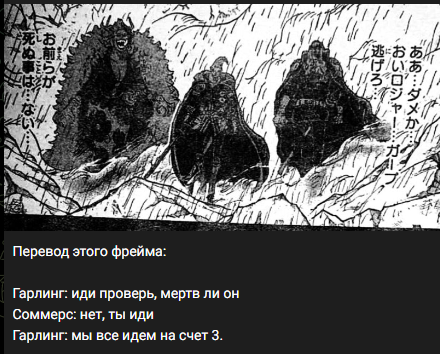 Рокс: «Ахх… Не сработало, да? Роджер… Гарп… Бегите… Вы не должны умереть здесь…»