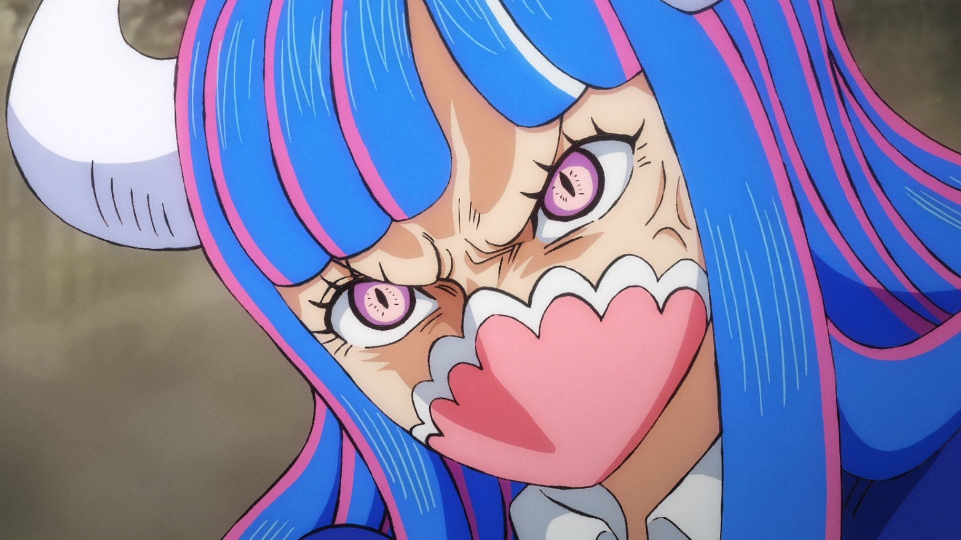 Затем, на эпичной последней разворотной странице главы, Гарольд вырвал свои рога!! После этого он встал на колени и протянул сломанные рога Морскому Дозору и Мировому Правительству, вся его лицо было залито кровью.