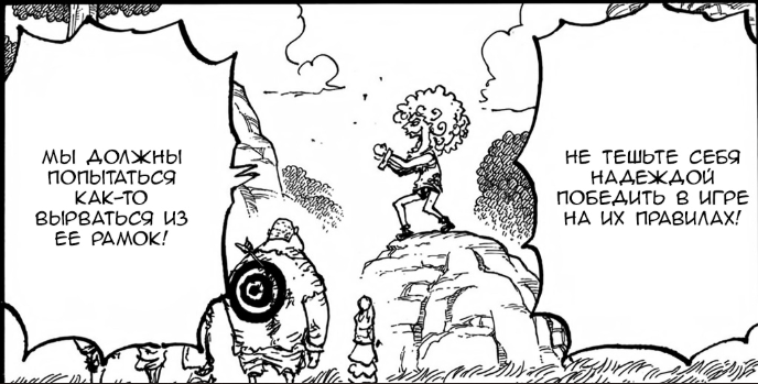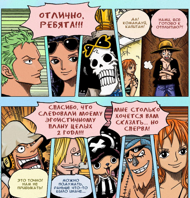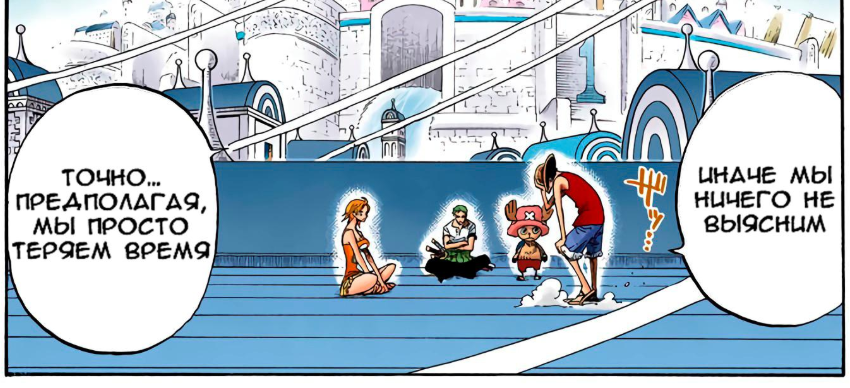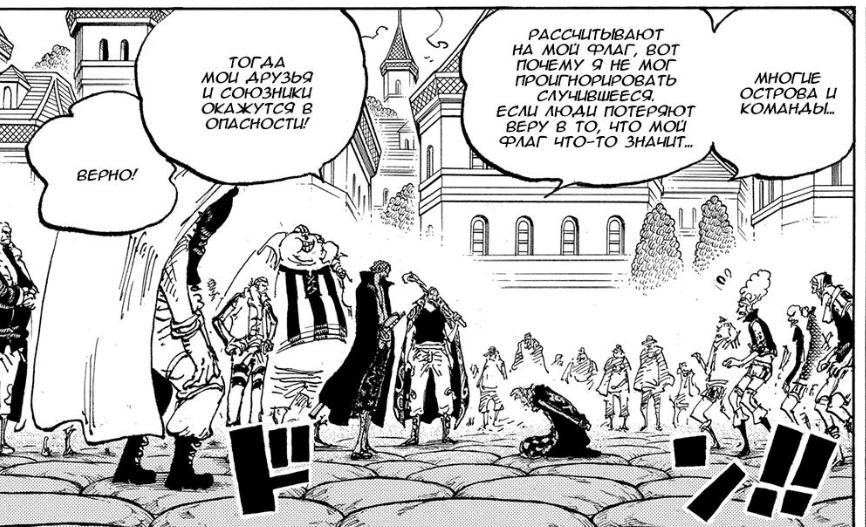 >Тут тоже не двусмысленно а четко понятно что Шанкс Был удивлен действием Ясоппа, приказа такого он явно не давал. При этом Шанкс их отпустил, а Ясопп забил на это хуй потому что решил что так правильнее.