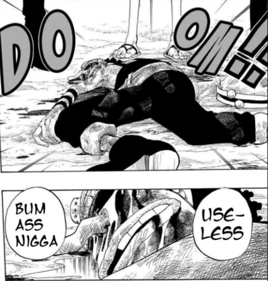 А капитан прост как 2 копейки, ебаный психопат который действует либо с животной простотой либо изображая поведение людей не понимая его причину. И даже более карикатурно чем было (шанкса просто пивом облили, а луффаря и зоро облили, отпиздили до крови и разве что в рот не наспускали).