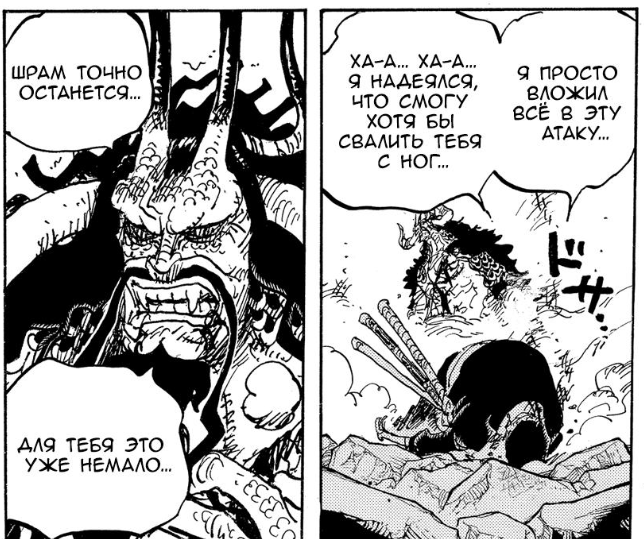 Про всякие гамма-ножи надо думать, мб они будут работать, но видимо Ло в мувике слишком обосрался от бесполезности своего фрукта против Багги, поэтому съебывал. Либо авторы просто забыли про эти атаки.