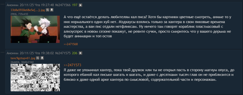 >>2471849 >>2471847 >>2471851 >пи-пи >ка-ка Уровень развития фаната хантера Застрял на 5 годах, времени первого сексуального опыта с участием приемного отца