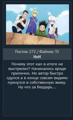 Если в детстве ты катался по разным странам, лазил по заброшкам, пиздился с пацанами — тебе будет нравится Ван Пис Если в детстве ты чаще играл с девочками, трогал их за всякие места — тебе будет нравится Фейри Тейл Если в детстве ты сидел дома — тебе будет нравится Блич Если в детстве с тобой никто не хотел играть — тебе будет нравится Наруто Если в детстве тебя ебал отчим, а старшаки макали головой в унитаз — тебе будет нравится Хантер х Хантер