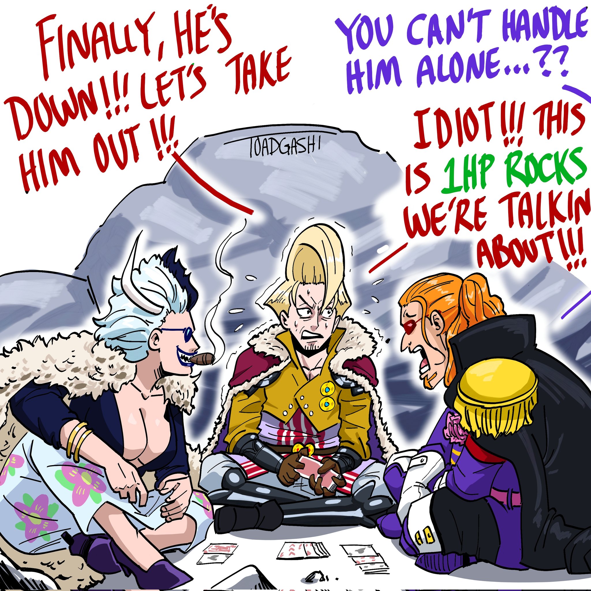 >Очевидно им физухи не хватало даже пробить нормально. Луффи одним пистолетом морского короля в воздух поднял, прикинь как надо ебашить чтобы боссы арок кровью ссали. Это аргумент конечно, но то как Луффи получал преимущество против Энеля и Крока было более натянуто чем "мы собираемся маленькую девочку, мы ее напугали".