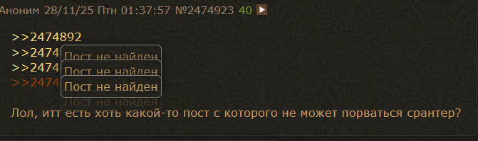 >>2477314 >Иди нахуй На хуе уже срантер сидит, вставать не хочет, ему там нравится, вспоминает детство.