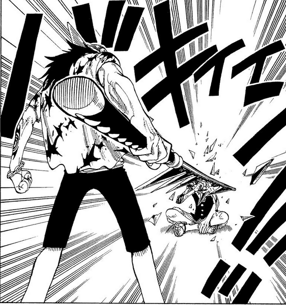 Пока Луффи боролся с персонажами, которые физухой дома ломали, когда еще не было никакой воли! И Луффи при этом не тренился физушно. Остановил меч Арлонга рукой, что тот не мог двинуться, а Арлонг дома ломал. Т.е нельзя все списать на фрукт, что тот смягчает удары или наоборот за счет упругости ебет.
