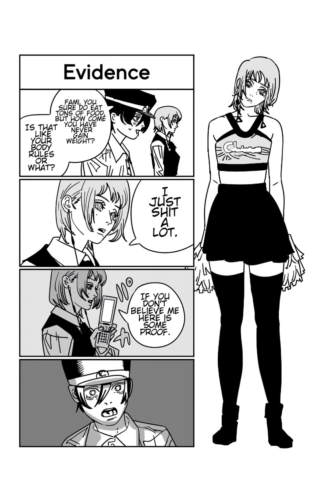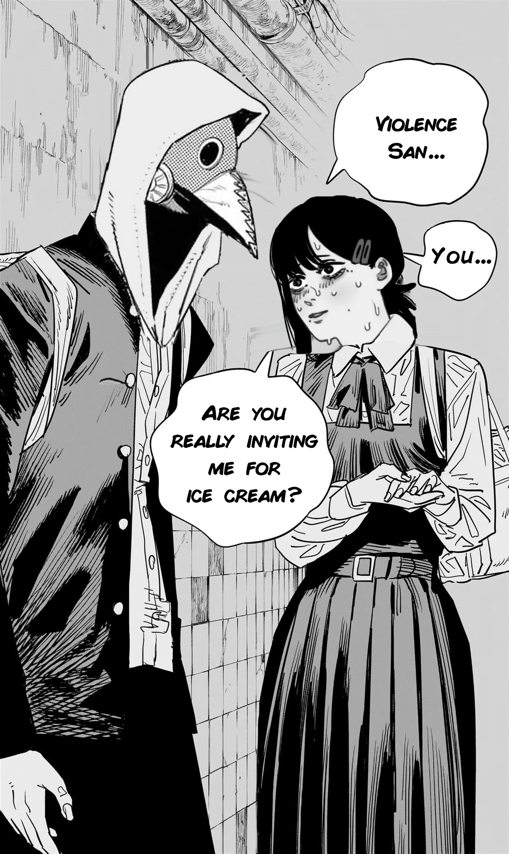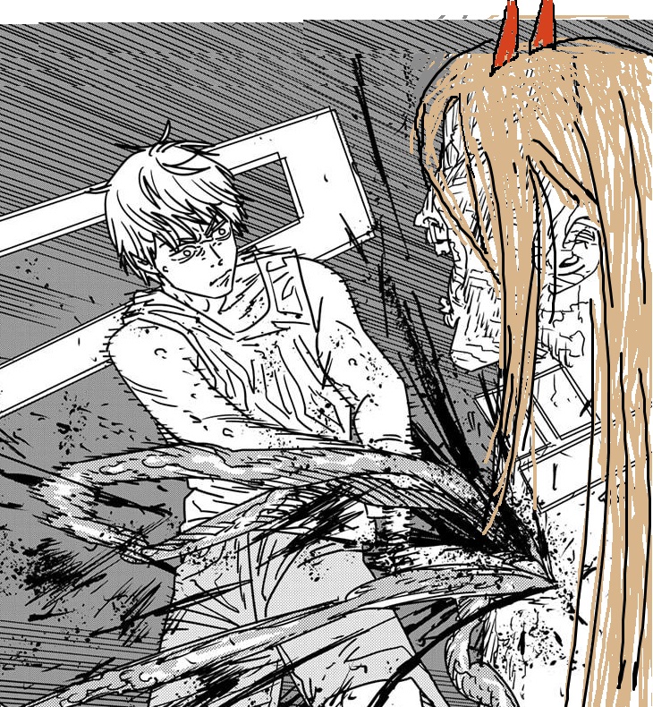 Вы вообще поняли какой пик деконструкции произошёл в главе? Йорочка злодейка - стала побеждать благодаря друзьям и силе дружбы. Но Денжи - положительный герой... наоборот победил силу дружбы. И стал убивать друзей злодейки...
