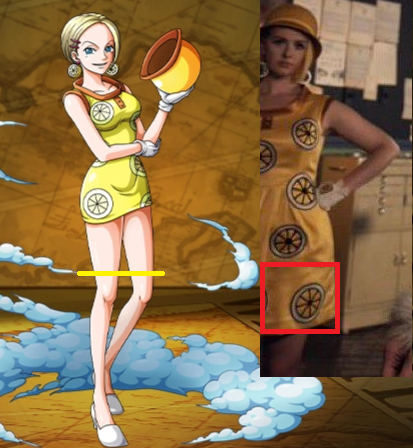Меня устроил бы средний вариант между этими двумя крайностями, по факту они оставили меньше кожи чем юбка Нами, и то мне кажется, короткой юбке у Эмили Радд мы обязаны Оде, он мог настоять на этом ведь Нами его во всех смыслах вайфу