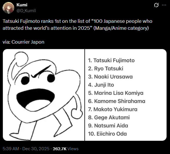 Фудзичмото, отдаю ему должное, смог придумать такую структуру сюжета, при которой может происходить все и ничего, и он может закончить мангу буквально в любой момент и буквально чем угодно, и фанаты все равно радостно будут вопить, какой это вин, переосмысление и новый путь для всей индустрии. Реддитовцы мгновенно найдут 400 фреймов, на которых видно, как все к этому шло с самой главы. Потом правда окажется, что англюсик как всегда все переврал, и смысл концовки другой, но ничего, вот ещё 500 фреймов с подводкой к True Final Last stolen Beautiful Ending.