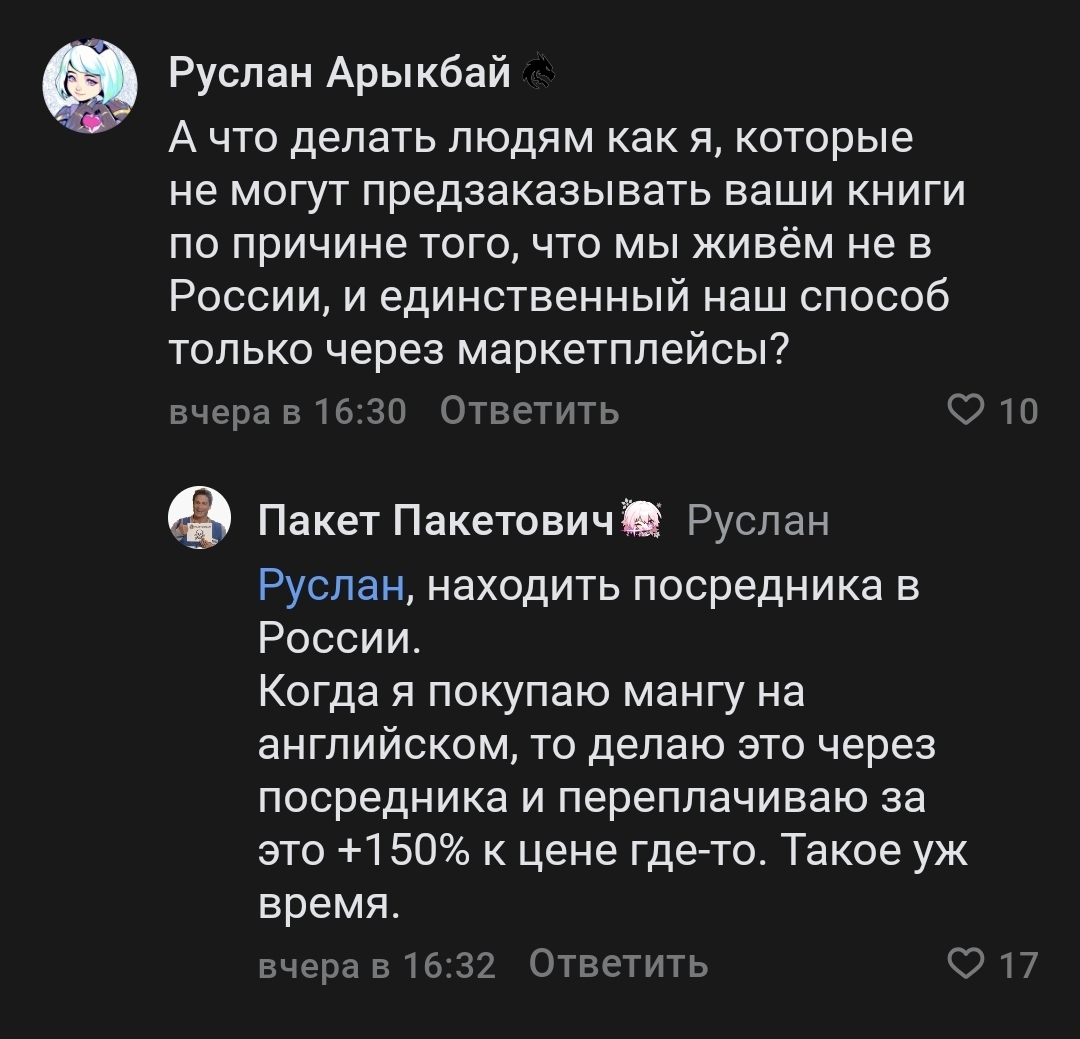 ВОПРОС: [Владимир Курков] Когда-нибудь я дождусь мангу про полненьких красивых дам, всякую романтику и не только котиксы, но и собачиксы❤️🔥 (продолжаю тренд с комментов предыдущего поста⬇️) ОТВЕТ: Подумаем про это.
