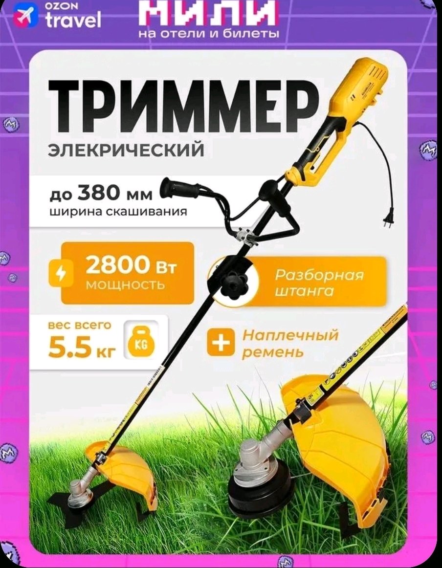 Берем электротриммер (спецом обхожу бензиновую технику, ибо машины у меня нет, а остаться на даче без топлива и с нерабочей техникой - не совсем хочется)