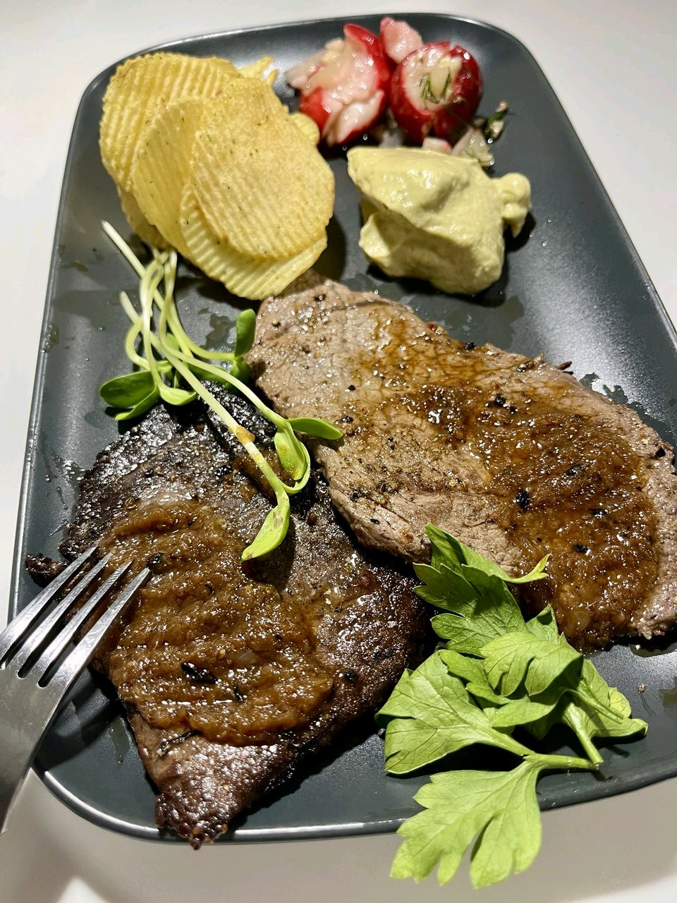 Вкус... Это был не просто вкус. Это был ДИАЛОГ. Диалог между моим иммунитетом и бактериями. Я чувствовал, как они спорят во рту. 15/10. Я не просто приготовил стейк. Я ПЕРЕОСМЫСЛИЛ СМЫСЛ ЕДЫ. Вы просто жрёте. А я веду диалог с вечностью. И вечность отвечает мне лёгким расстройством желудка.