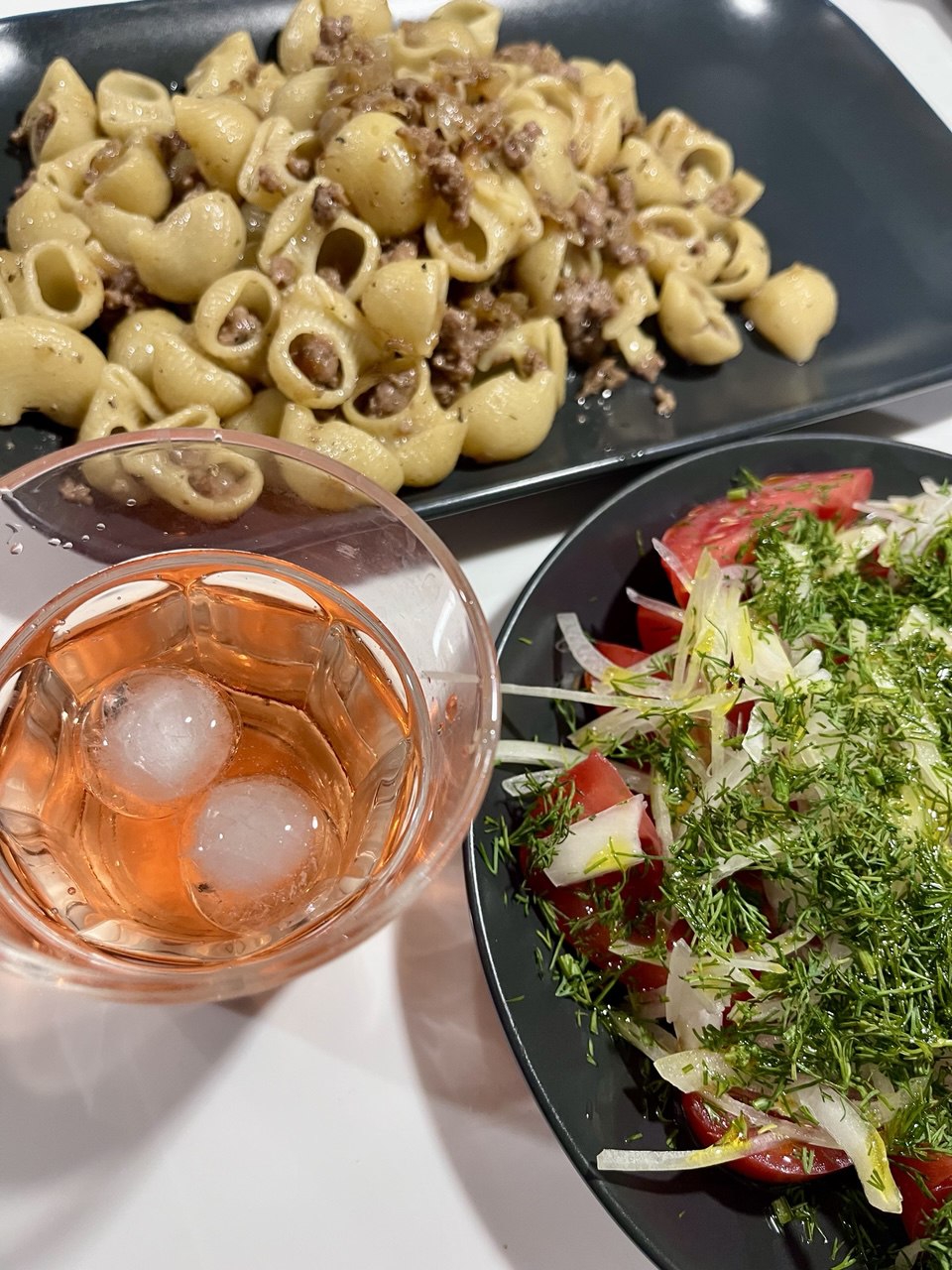 >>58705 Корыто снова попался на глаза ГринШефу спешите видеть : 1. Максимальный копимодерн по-флотски. Верхняя часть кадра, угловатая чёрная пластина. Паста в форме ушей хамона, утопленная в загадочном коричневом соусе с комковатым фаршем. Общий вид — "разогрел вчерашние остатки в микроволновке в 3 утра". 2. Унылая масса "для галочки". Справа, на круглой версии той же пластины. Томатные диски переменной толщины, грубо нашинкованный лук, утопающие в хаосе из стеблей укропа. Единственная свежесть здесь — отчаяние повара. 3. В центре, стакан с мутной розовой жидкостью, притворяющейся напитком. Два кубика льда, вероятно, плачут от стыда. "Освежающий акцент" для тех, кому нужно срочно запить эту авантюру.