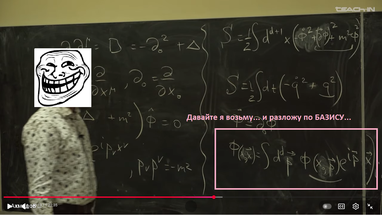 >разложи там что-нибудь по базису из дельта-функций Это у нас тут альтер-эго мелкочмошной ебанашки или его брат по разуму за ним подкукарекивает? Где же ошибка в формулах в которых якобы что то не так? Неделя прошла почти. Тяжеловато найти ошибку когда все верно, да?