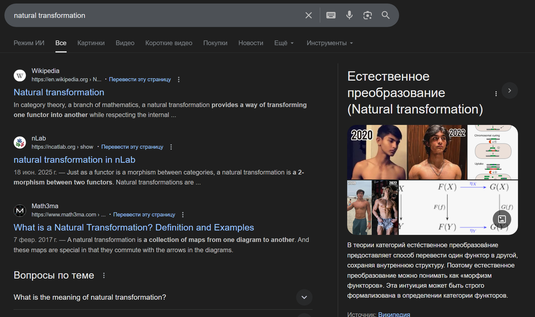 Еще помню когда впервые увидел определение естественного преобразования охуел от винегрета из буков, минут двадцать глазами по ним бегал кругами. Сейчас же это определение кажется таким простым... Теперь я так же бодаюсь с определением сопряженных функторов...