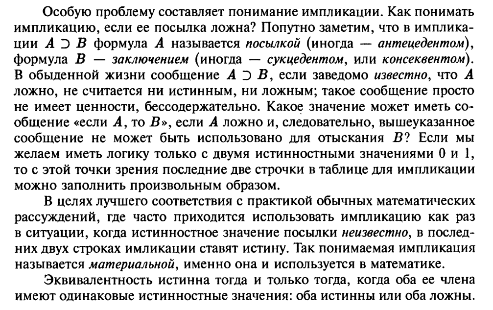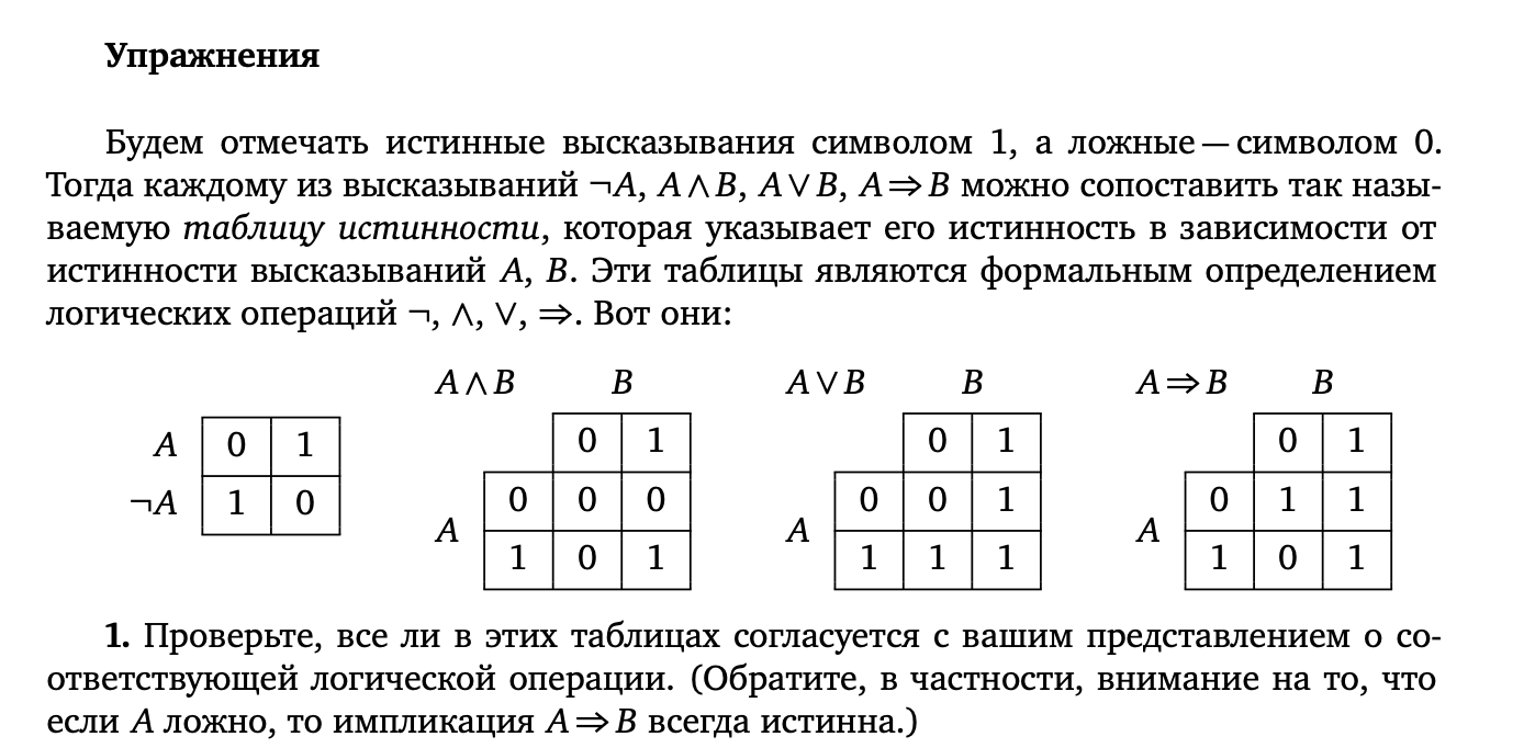 Что-то я got humbled первым упражнением из Зорича. А именно последней табличкой и написанным в скобках. Если А и Б несвязанные стэйтменты, то импликации вообще никакой быть не может, в чём я не прав, блять? А если связь есть, то стрелка из ложного А в трушное Б необязательно тру, памахити.