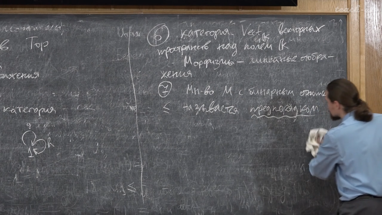 >>123916 >хорошо произносить то, которым удобно пользоваться Ну только вот это не про удобство. "Негласное" правило теорката это отход от рассмотрения того, что там происходит на уровне "элементов" структуры, к рассмотрению морфизмов. И вроде как на словах получается, что стандартное определение как раз таки этому и следует (ну и правда, вот же они морфизмы, без действия на элементах - обычно так это определение мономорфизма и мотивируется). Но вот только мы в этом определении всё равно перебираем элементы, только морфизмы теперь эти элементы и есть. Поэтому "по-категорному" логичней было бы перейти к рассмотрению именно морфизмов (морфизмов), то есть хом-функторам. Это определение мне всегда бросалось в глаза своей некатегорностью.