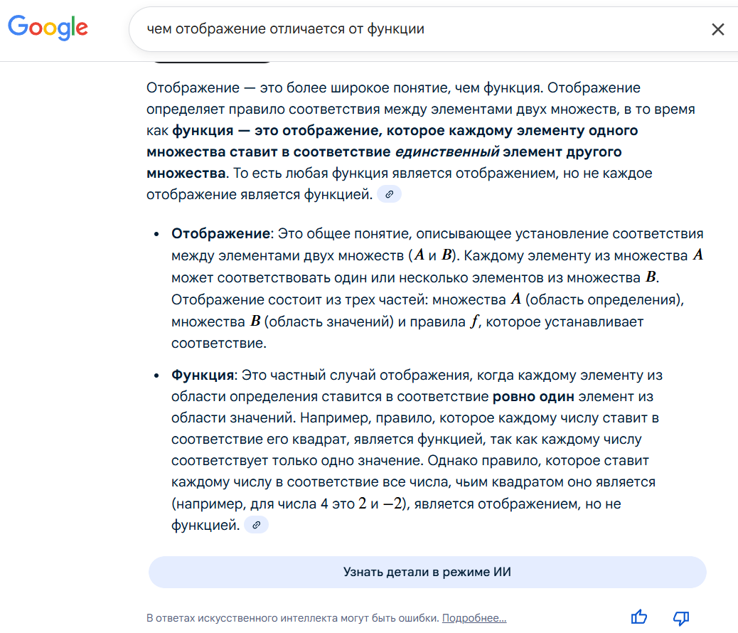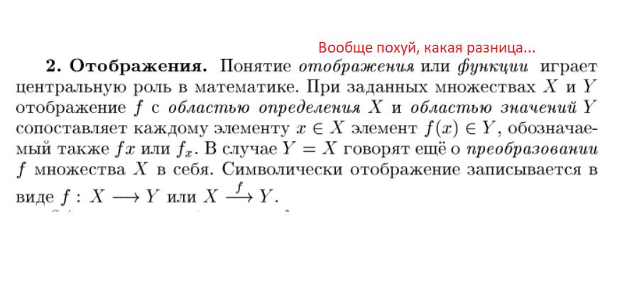 >>124125 исторически сложилось иногда под функцией понимают отображение, которое из множества бьёт в числа, и этим отличают функцию от общего отображения
