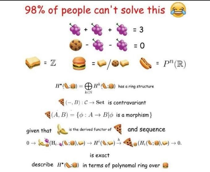 Опять тред разделился на две враждующие стороны: на тех, для кого всё очевидно и для кого теория категорий с гомологиями - это просто занимательная математика, а также на тех, для кого всё не так очевидно и для которых даже простые учебники требуют включения всех мозговых ресурсов. Первые обвиняют вторых в тупости и ригидности, а вторые обвиняют первых во вранье и поверхностности. Думайте.