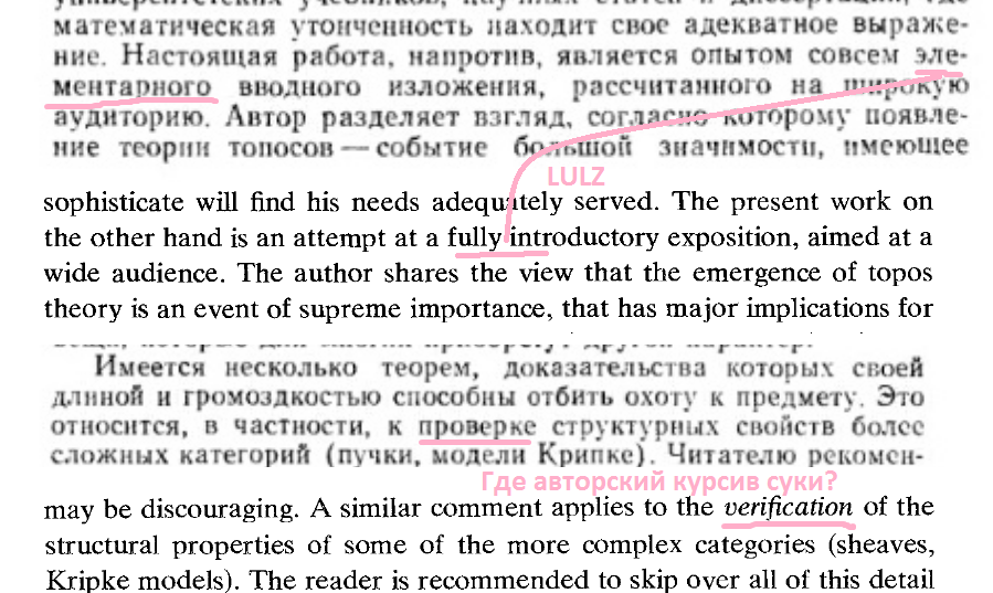 Похоже что авторы книг по математике реально верят что если они вставят в начале несколько страниц по наивной теории множеств и откровения вроде: >Thus {0,1,2,3} denotes the collection whose members are all the whole numbers up to 3. то это реально сделает книгу на порядок доступнее. Т.е. реально в их картине мира человек не знающий этого полезет читать книгу по топосам и сможет в ней все понять. Пик частично релейтед.