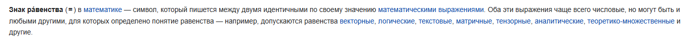 >>29047 (OP) Что такое значок "="? Я воспринимал его как сокращение от "результат", 2 + 3 результат (=) 5. Но можно написать 2 + 3 = 7 - 2, коупим что результат слева равен результату справа. Но как закоупить 2 = 2?