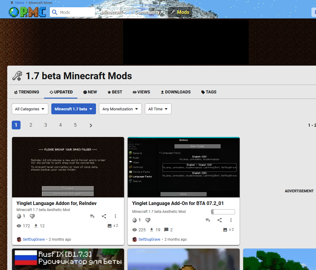 Сап, кубач. Вот уже год как задумываюсь поиграть в старый майнкрафт с модами. Выяснилось, что все моды просто пропали из интернета, нихуя он не помнит, лол, даже по самой популярной игре в мире то же самое касается и карт на прохождения. Раньше всего этого было просто бесчисленное колличество на разнообразных сайтах. На данный момент, после 1.0 и до 1.7 меньше всего контента, даже на бету можно больше найти. Поэтому предлагаю делится в этом треде находками: модами, картами. Что откапал я, но оно не так и глубоко было: 1. Архив модов на beta 1.7.3 на архив орге 1000 модов собранны одним человек, по его словам, ушло 2 года на это, все рабочие, он их лично проверял, как ставить есть видео у него же. 2. Моды на planet minecraft, тоже бета, большинство модов не видел в коллекции на архив орге. 3. MCAchive Был моим главым источником модов для версий после 1.0, есть также и для беты моды, что нет в архиве или нужные версии модов-апи.