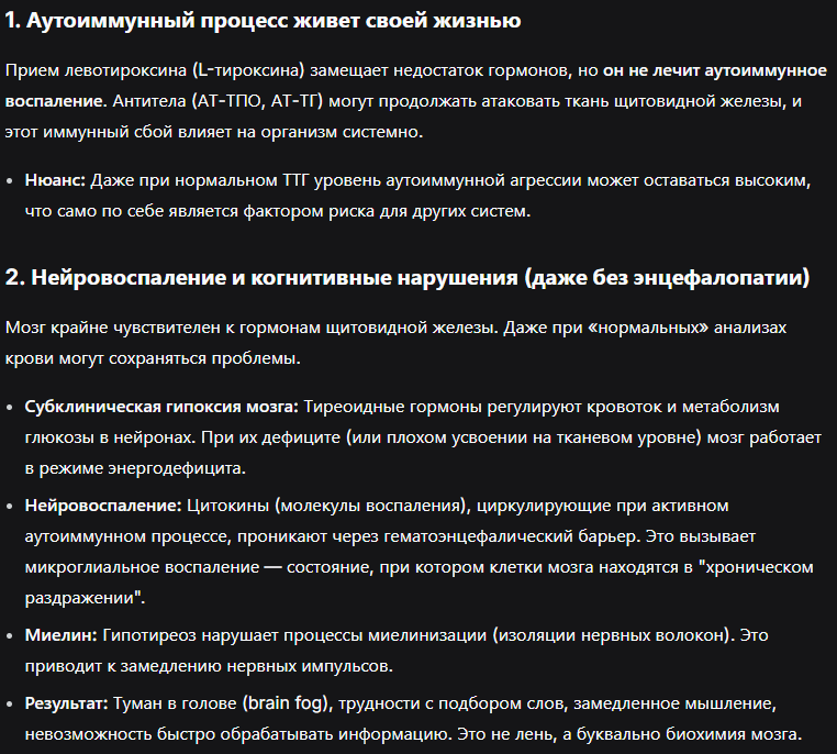 >>1657416 Нет, не получал. Потому что диагноз гипотериоз был поставлен как следствие перенесенного когда-то тириоидита. Когда он был - хуй его знает, дело в том что других причин для гипотериоза не было (а так как я слюни не пускаю, он не врожденный) На данный момент, как я писал выше, щитовидка на узи выглядит нормально, диффузные изменения не наблюдаются (но были лет до 20)