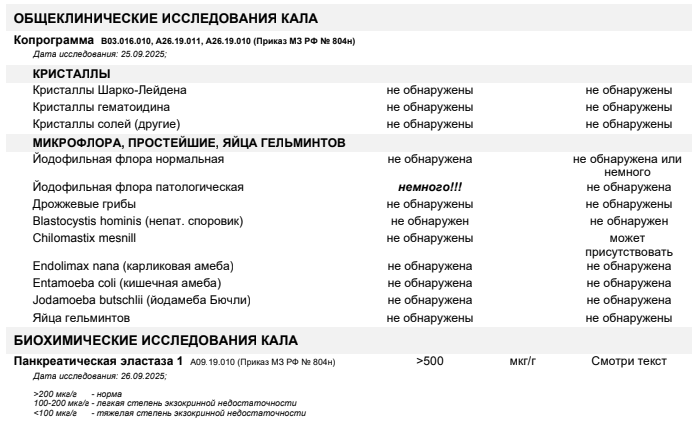 Анализы которые пока что сдал это копрограмма и эластаза-1. На пикриле, что паталогическое: ph 5.0 Обнаружена кровь Обнаружен жир нейтральный Обнаружена растительная клетчатка непереваренная Обнаружен крахмал внеклеточный Обнаружены единичные эритроциты Обнаружена йодофильная флора паталогическая