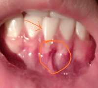 Вот такая херня уже в течение двух месяцев. Не проходит. Появилась она после поедание чипсов. Сначала была небольшого размера, теперь как на фото. Не болит, не зудит, жжения никакого.Что это?