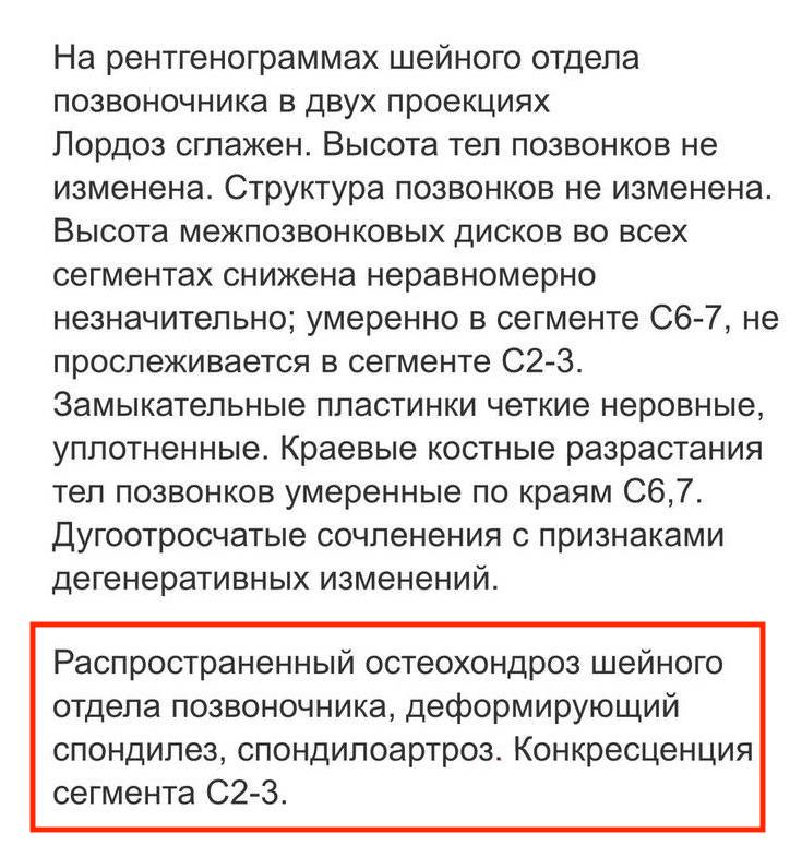 Пол года назад МРТ делал, у меня 2 грыжи(0,35 и 0,4) в шее и несколько протрузий + было написано что признаки унковертбального артроза и выпрямлен лордоз. сейчас ситуация не изменилась, но 1 протрузия стала меньше на 2 мм, написали что лордоз сглажен и вместо признаков унковерт. артроза, написали что просто унковерт. артроз.