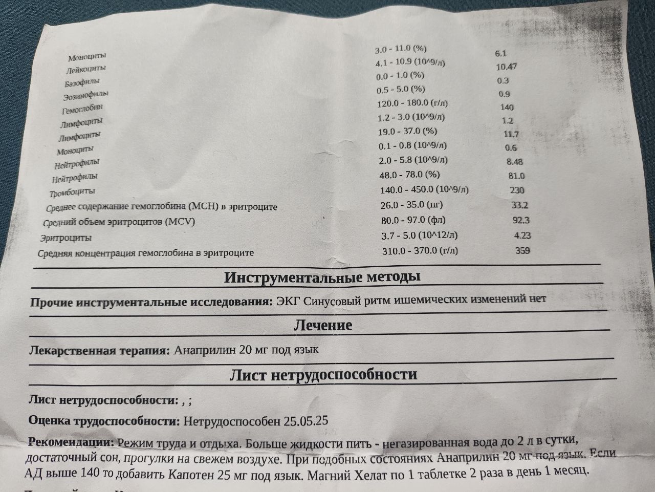 >>1624299 ПА , 90 проц , что трясунчик , сердечный приступ вообще не так выглядит скорее всего тебе сняли кардиограмму , если на ней всё норм , то это проблема нервной системы. Тебе дали бета блокатор , который по сути блокирует действие адреналина на сердце , что подтверждает , мою догадку о том , что это был симпотно адреналиновый криз , потому что если бы давление поднялось в следствии проблем с сердцем тебе бы анаприлин 20мг так хорошо давление не сбил это сто проц . Для успокоения сделать узи сердца , узи сосудов шеи , суточный холтер , мрт головы , если на них всё норм , то решать проблему психоэмоциональной сферы либо пересмотреть свои привычки - отказ от стимулятора , алкоголя и никотина , наладить режим сна и питания , добавить бады (магний , теанин ,растительная седатика ) умеренные физ нагрузки . Таким образом тело тебе сигнализирует , что нервная система не справляется с образом жизни , это могла быть как и разовая акция , так и предвестник будущий приступов паники или выброса адреналина