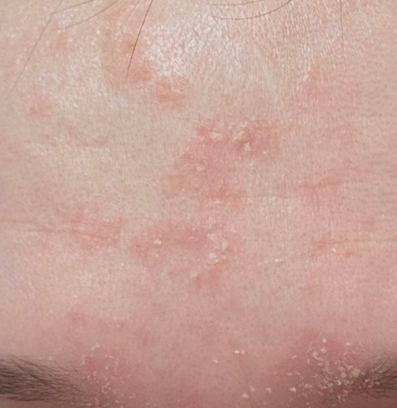 Вся голова в прыщах, и в сухих мелких чешуйках. Под бровями тоже кожу сушит и на подбородке немного чешется.