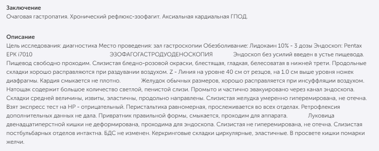 >>1636359 >По скопии? Год назад: Рабепразол + Де-Нол + Ребагит + Альфазокс (Ребагит принимал 2 месяца) -> контрольное ФГДС - ниче не изменилось. 2 месяца назад: Нексиум + Де-Нол -> ФГДС - никаких изменений. Месяц назад: РАЗО + Ребагит + Одекромон + Альфазокс. По ощущениям НИКАКИХ НАХУЙ ИЗМЕНЕНИЙ, так что мне врач сказал, что не имеет смысла делать ФГДС, если ничего не меняется, и нужно смотреть в другую сторону, после чего выписали то, что на пикче выше. >Тряска, менталка есть какая-то? Нет никакой тряски, буквально 0 раздражителей - сижу дома и играю в игрульки целыми днями. Но, как я уже написал выше, успокоительное мне выписали на 3 месяца, хотя я четко ответил, что нет никакой тряски. >Вредные привычки по типу твёрдого - сухарей, орехов, семок; жареного, острого, соленого, квашеного килограммами, курева имеются? Раньше - возможно. "Возможно", потому что не уверен, что количество было достаточным, чтобы это хоть как-то повлияло на что-либо. Последние 3-5 лет - нет, ничего из перечисленного. >Зачем, челюсть сломали? Нет, выписали максимально строгую диету - без соли, без жирного (даже жирные части курицы под запретом), без свежих овощей/фруктов (кроме бананов и тыквы), без ГЛЮТЕНА. Почему так? Не знаю, "пук-среньк, нагрузка на желудок", "пук-среньк, тяжелая еда", "пук-среньк, повышение/понижение кислотности". Не ебу, в общем, просто суть в том, что ЕДА никак не влияет на боли. >Тебе назначали? Ну естественно, я же не сам решил ДВАЖДЫ купить месячный курс ебучего Альфазокса за 10к.