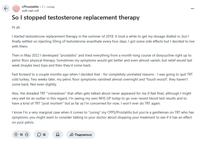 >>1618685 Чел, ты поехавший. Читай первый пост, садись на уколы экстракт простаты, свечи или химию пей. 10 лет у него простатит, а он ничего не делает...