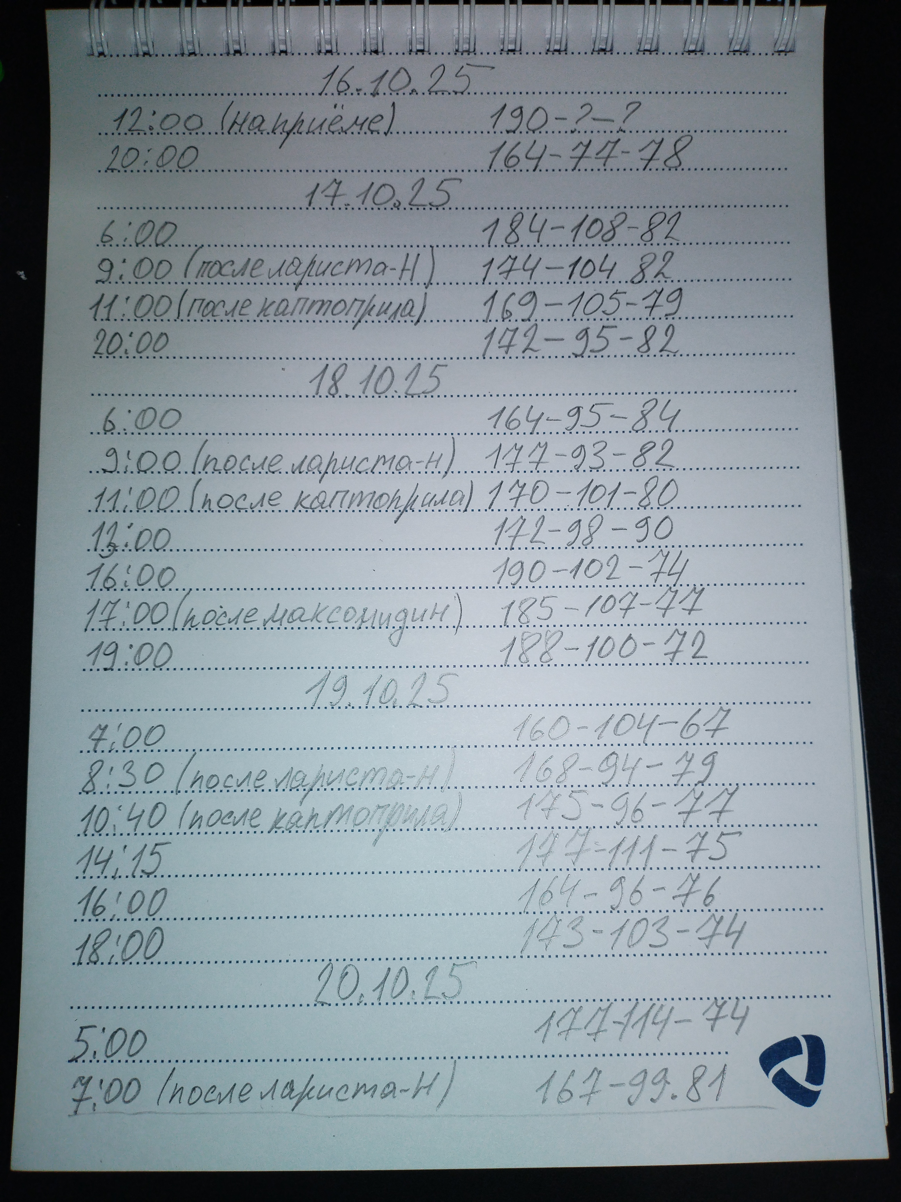 >>1645666 Сходил к терпвчихе, та псмарела на листик с замерами и прописала другие таблы. Вальсакор-н 160мг утром, и Амподипин 10мг на ночь. Плюс записала через месяц на узи почек. Пока сам не скажешь, хрен почешутся. И таблы я уже заманался менять, они тож намана так бабок стоят. Бум ждать узи. А так 27 на прием, типа продлила больняк.