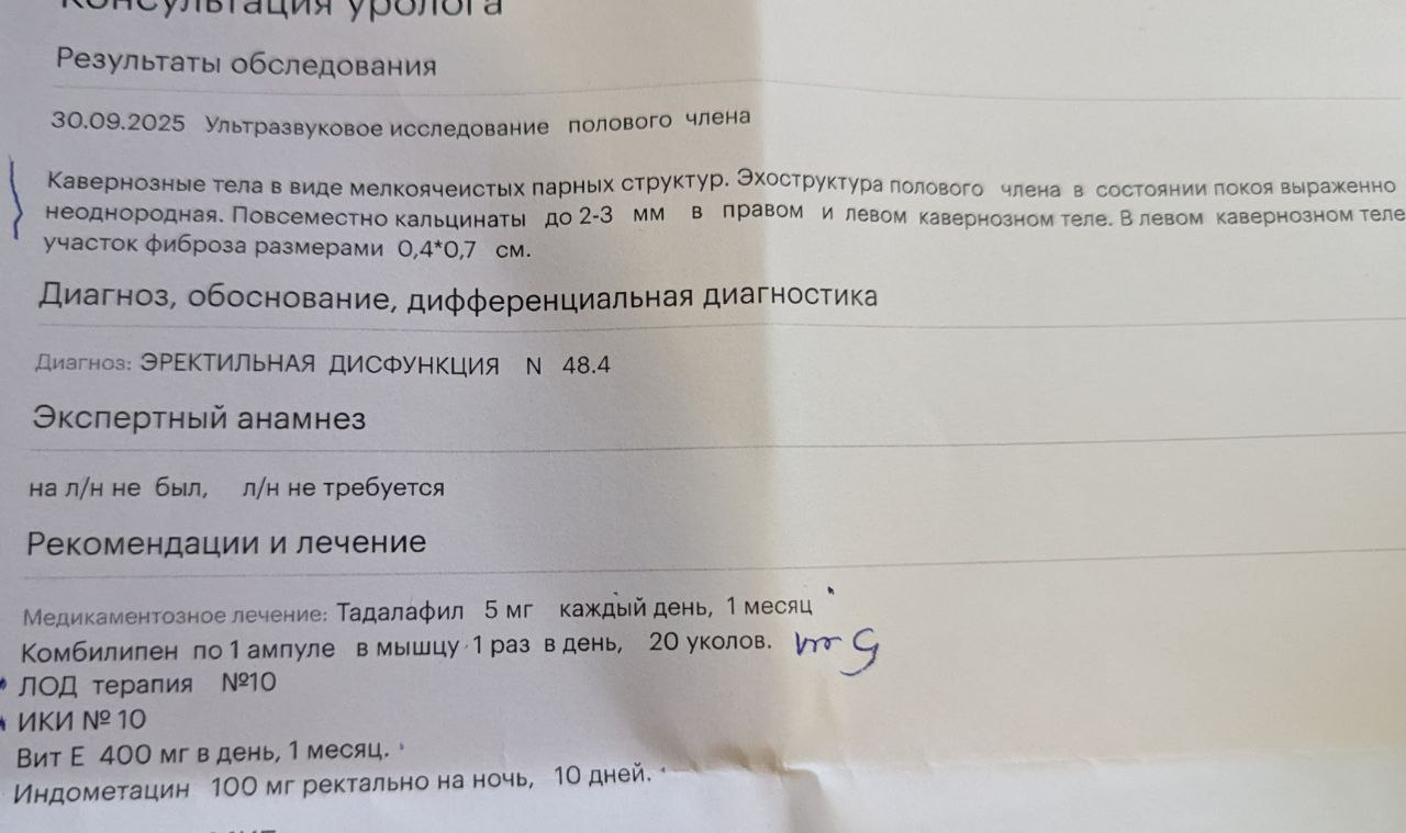 Аноны хелп. Делал НУП, на протяжении 5 лет, раз в пол года, неделя-три. Ну периодически. Травм не было, бывало иногда уплотнение фиолетовое-но проходило. Последний раз делал, 2 месяца назад. И во время 1 упражнения-сидел на члене. Ну взял в эрогированном на 1/3 состоянии члена, развернул назад и "натягивая за жопу" сел на стулу. И так сидел 10 минут-в 2-3 подхода. В один момент, встал, достал член, а он вяленький стал. Проверил- включил порнуху-не встает. И головка стала холодной. Крайняя плоть на конце-тоже холодная. Так же кегель- напрягал мышцу- головка не набухала. Хотя раньше при кегеле набухала. Член стал "втягиваться внутрь" при кегеле. Раньше он просто вверх поднимался. Сейчас втягивается внутрь. Спустя пару дней попробовал дрокать-член стал заметнее мягче при эрекции. Головка наполняется кровью на стояке, хоть и ощутимо меньше, чем раньше. Но на вялом-вообще не наполняется. Так же, у меня член стоял "вверх". И опускать вниз было больно, и невозможно, "барьер был". Ну связка, вроде, не давала. Сейчас спокойно вниз опускаю стояк. Когда сидел на члене-ничего не заметил. Т.е. "получения травмы не было" Прошло 2 месяца. Был нофап 3 недели-ничего. Не помогло. Пробовал виагру-не помогает особо. Раньше на виагре 5 раз+мог дрокать и каменный член был все разы. Подряд. Сейчас 2 раза максимум. На третий раз уже мягкий-еле еле получается. Сходил на днях к урологу+узи члена в спокойном состоянии. Врач говорит с двух сторон фиброз. А с левой стороны рубец. На мой вопрос "Может надо еще делать какие-то исследования, например, связку проверить, или такое же узи но при эрекции с вводом препарата?", говорит, что дело не в связке, т.к. были бы другие симптомы-член бы просто болтался. Говорит не надо при эрекции узи делать-т.к. это для меня вредно будет (эрекцию вызывать). Сам я думаю, что дело не в рубце и фиброзе. Т.к. это случилось сразу же после сидения на члене. А там он не был в эрекции, а фиброз был получен при 100% эрекции с джелкингом Ну и лечение-спросил про "лонгидазу"-говорит мне уже не поможет, помогает на начальных стадиях только Пж помогите Что со мной? Какое исследование делать? Как лечить?