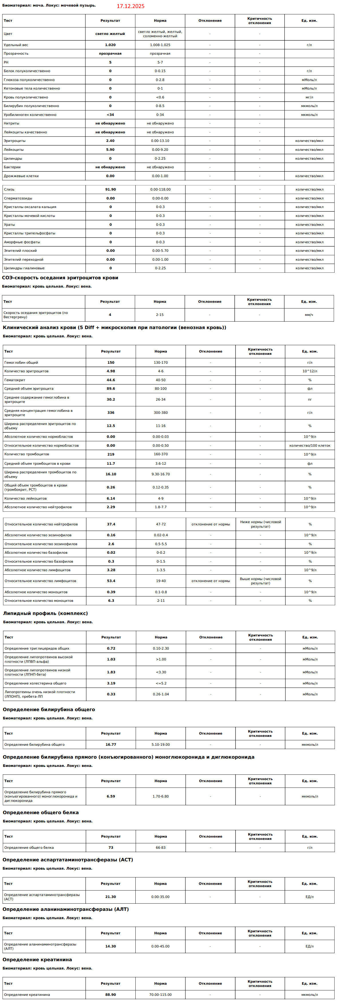 В ноябре 2024 сдал анализы на все ЗППП, ничего нет. Разве что креатинин повышен. Норма от 5.6 до 14.7, у меня 18.5.
