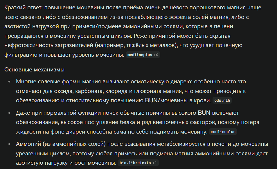 >>1642319 Ну смотри, например у многих начинают болеть суставы и связки и травмы долго и плохо заживают на цинке, даже на 10-15 мг. Там фишка в том, что есть такой фермент - lox, лизилоксидаза, которая работает только с ионом меди. Так вот когда некоторые чувствительные люди принимают цинк даже в малых дозах, ионы цинка локально в соединительной ткани конкурентно щанимают сайт меди в ферменте lox, из-за чего он не работает, снижается системно его активность, а он в норме отвечает за сшивку коллагена и эластина, делая их матрицы прочнее, отсуюда микроразрывы накапливаются и возникает воспаление связок, суставов, может даже возникнуть болезнь Пейрони на этом фоне. Так что тут надо аккуратнее и стараться получить цинк из пищи, дабы не вызывать такие локальные но далекоидущие дисбалансы. Уверен со многими другими вещами может быть похожая картина
