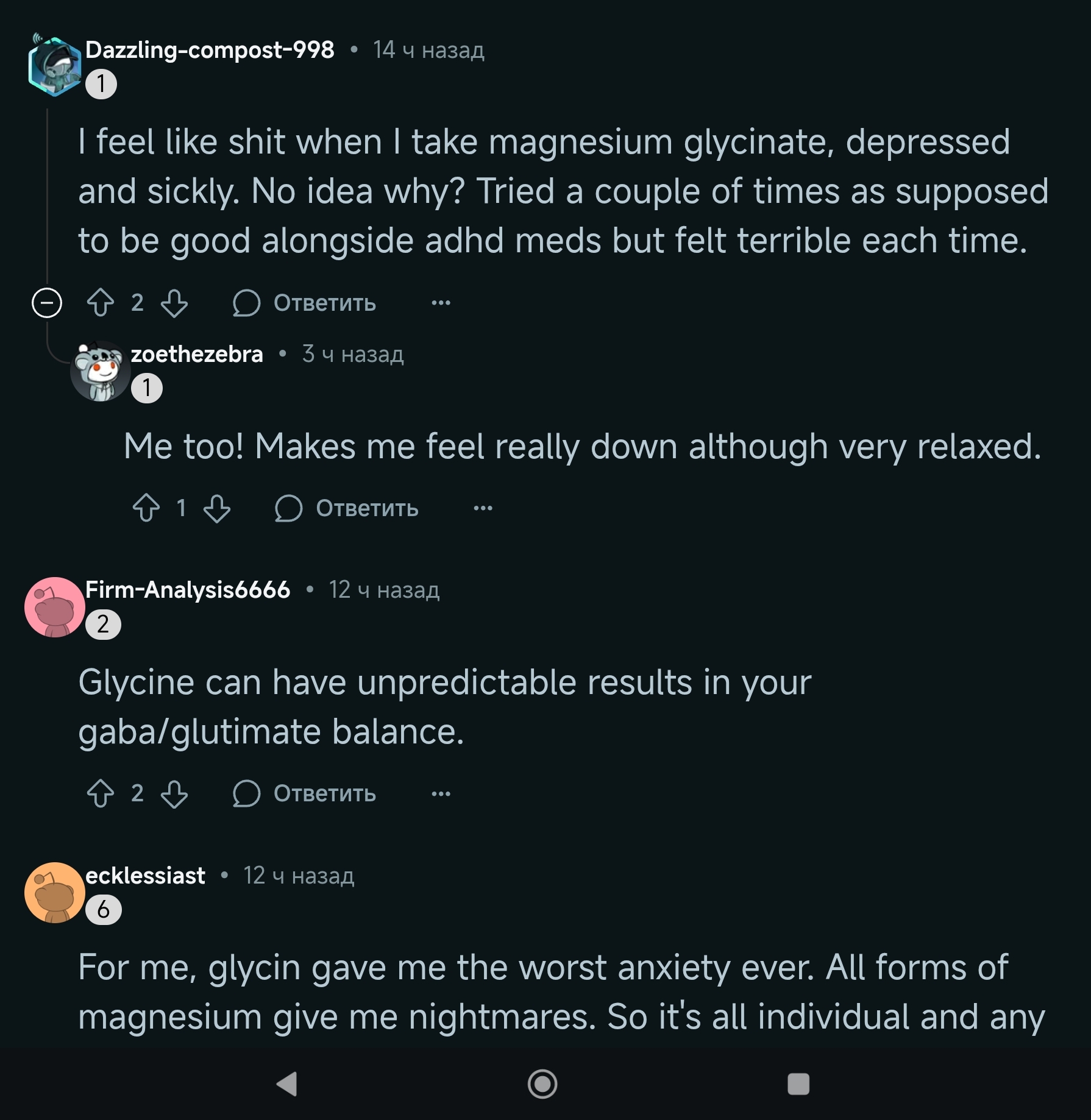 Ладно, для некоторых это может показаться странным. Итак, я начал принимать глицинат магния, и примерно через неделю я заметил снижение сексуального влечения и либидо. Мне не хочется заниматься сексом. Раньше я такого не чувствовал. Обычно я принимаю ашваганду каждый день, и это никак не повлияло на мое либидо. Но когда я начал принимать глицинат магния, это повлияло... Я почувствовал что-то вроде онемения, и мотивация пропала, просто как в тумане, и все было странно. Я не знаю, как это объяснить. Кто-нибудь сталкивался с чем-то подобным? Мнение?