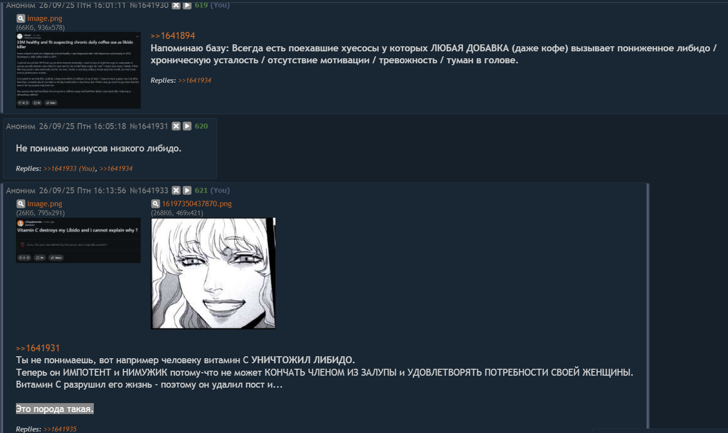 >>1641894 Напоминаю базу: Всегда есть поехавшие хуесосы у которых ЛЮБАЯ ДОБАВКА (даже кофе) вызывает пониженное либидо / хроническую усталость / отсутствие мотивации / тревожность / туман в голове.