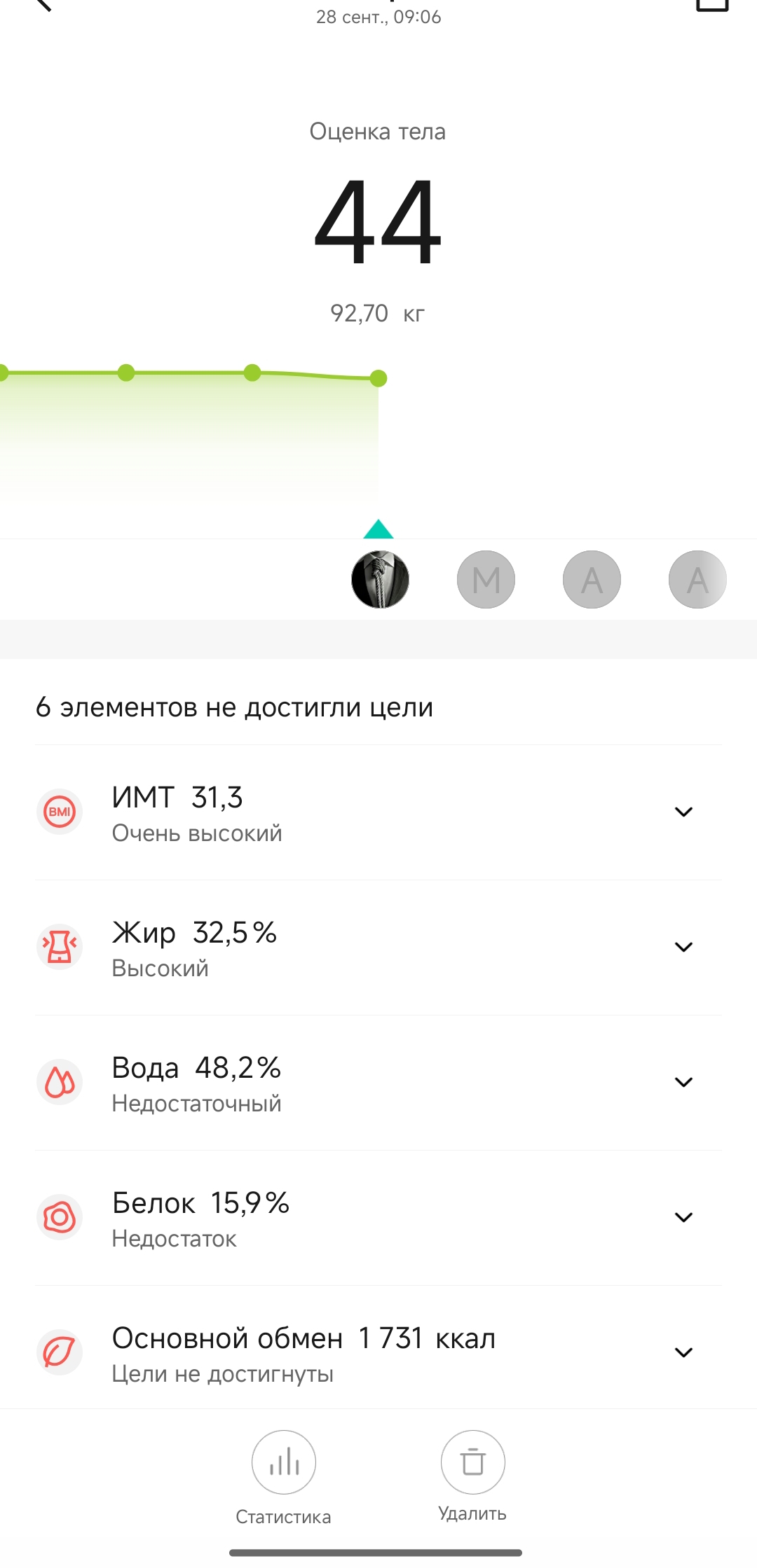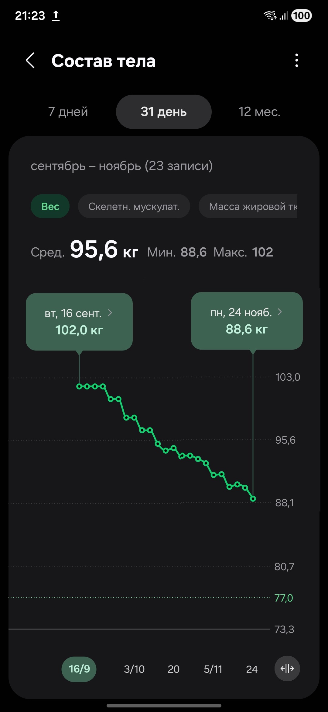 >>1641783 заабвно, нашёл свой же пост, прошло ровно 2 месяца - дошёл до 1.0 шмурды в неделю, лёгкие побочки иногда бывают, например если укол делаю в среду то в вечер субботы-воскресенья нет-нет да и проскочет небольшая тошнота. Ну она реально небольшая, жить особо не мешает, но факт что есть. Жирохрючево в общемт перестал есть, ну так пару картофелин фри перехватил как-то на ужин, да сильно и не тянет. Был раз навернул какой-то тяжелой еды, жареное что-то или с майонезом, не помню даже что именно - охуел от того как это неприятно оказывается. Перешёл на схему питания 1 раз на ужин, в редкий день могу на обед перехватить банан/йогурт, а так каппучино с 1.5% молоком на завтрак/обед и заебца. Вообще фрукты прям полюбил, раньше никогда толком не ел, а щас вечерком яблоко/банан/ананас оче даже заходит. Это вместо кучки бутеров или пицц-шаверм как было раньше. Бухло - в последние года начал увязать в синей воронке, литр на выходные, чекуш в среду - заебись. Я конечно осознанно с конца сентября перестал пить, но факт - на шмурде желания особого пить нет. И да, кочалку же еще подключил, первое время прям лютейшее ЖРАТ!!! после тренировки было, на 0.5 притупилось, на 1.0 сейчас вообще пох. Результаты на скрине. Сказать что это всё исключительно влияние шмурды - нет, я сам головой допёр до того чтобы изменить жизнь, это осознанное моё решение. Но шмурда охуенно помогает в этом. А, получил шикарнейший комплимент от тёщи - тебя, говорит, будто из голодного года какого-то вытащили. Такие дела онончики, если есть вопросы задавайте.
