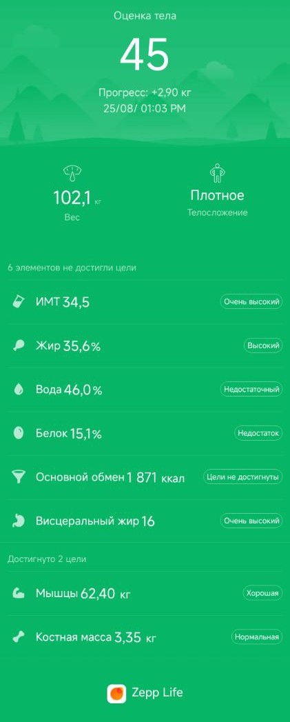 Ну вот уже на весах цифра 102. Я такое помню где-то 3 года назад было. Вот я нажирал себе пузень больше 3х лет (по факту, с 16 лет), а сбрасываю всего с августе. Бонусом перестал бухать, появились деньги. Купил себе два музыкальных инструмента, обновил пекарню, жизнь улучшается.