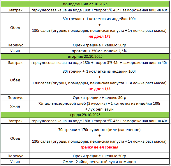 11.10 (суббота) был 123.20 кг 15.10 (сегодня) 120кг