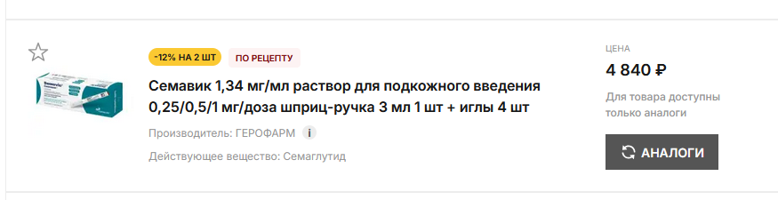я сходил в платную клинику, сдал анализы, у меня опредилили инсулинрезистентность и выписали и семаглутид и тирзепатид, типа на мой выбор.