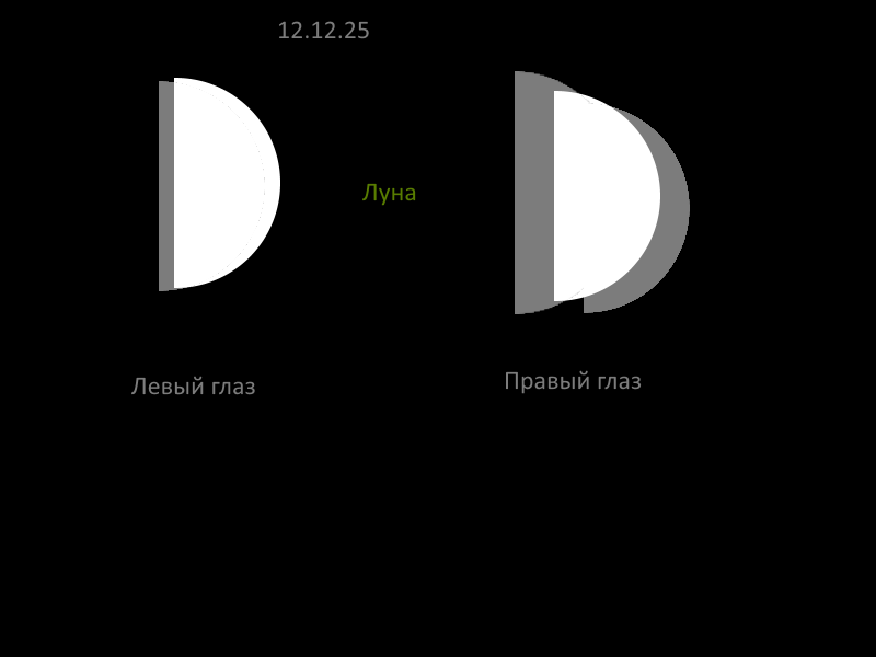 Вот так выглядит Луна. У левого глаза есть второе изображение, а у правого аж два, и оба немного сильнее, чем у левого.