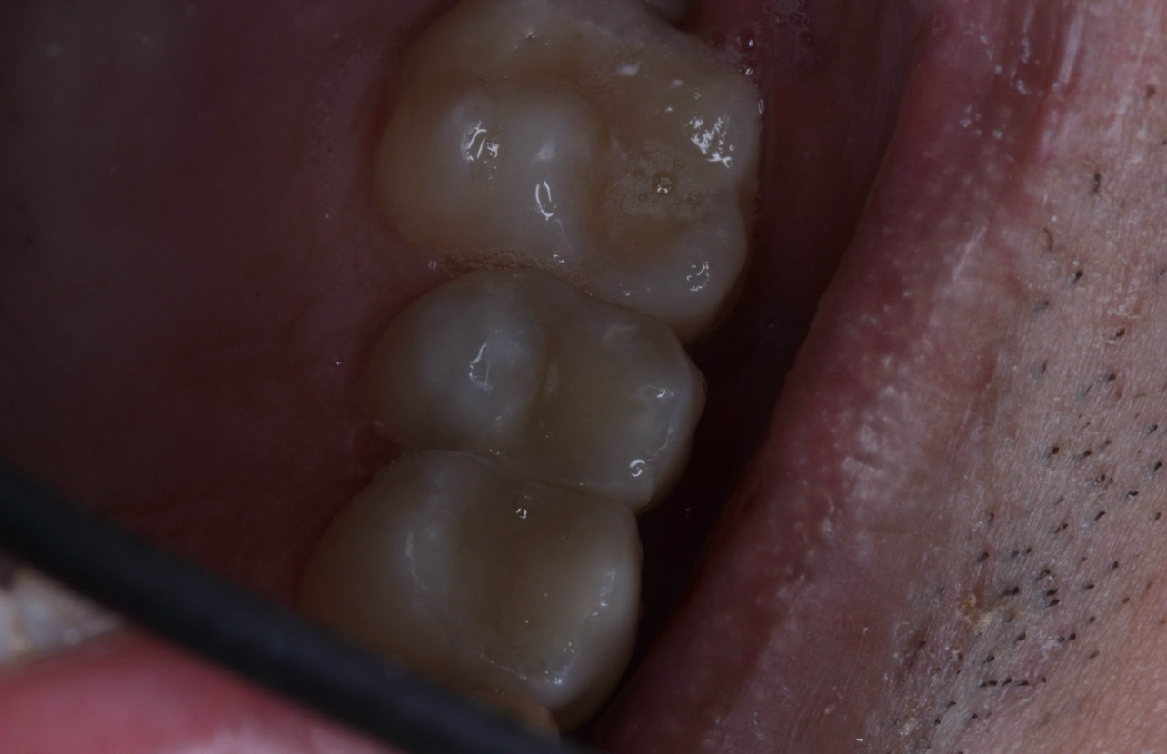 Сегодня ходил лечить пульпит, шестерку нижнюю, почистили каналы и поставили временную пломбу. Пломбу не фоткал как она была до. Было ощущение что при закрытии рта верхние зубы чуть-чуть опирались на зуб с пломбой, понял это уже только когда ебало от наркоза медленно начало отходить. Через четыре часа поел чуть теплого супчика с мягчайшими тефтельками, это был первый прием пищи после пломбирования, и понял что почему то верхние зубы снизу опоры больше не ощущают. Как будто часть пломбы отвалилась. Фотки прикрепляю.