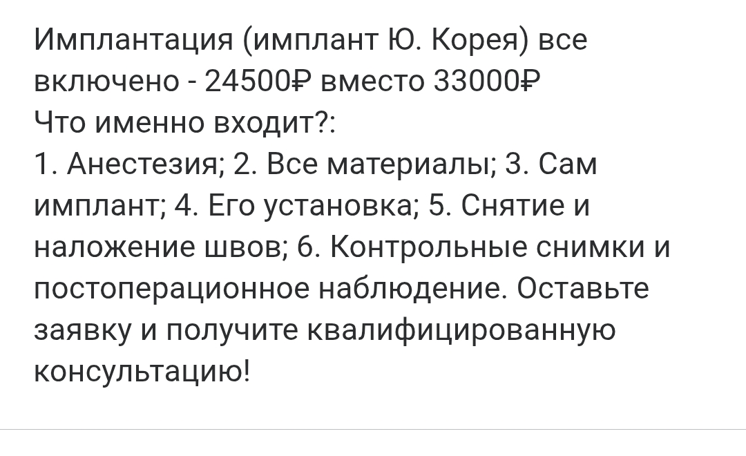 За 250 кило зелени впору уже естественные зубы выращивать, а не железки в кость вставлять. Хотя кто знает, может и доживем до родных зубов из пробирки. Эх.