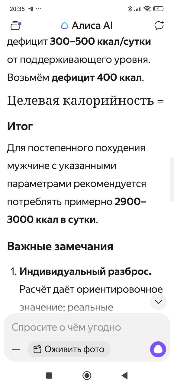 лучше ориентироваться на норму калорий для целевого веса, а не того который сейчас. калькулятор мне например считает текущую 2600 ккалорий, но в реальности 2000-2100 спокойно держится