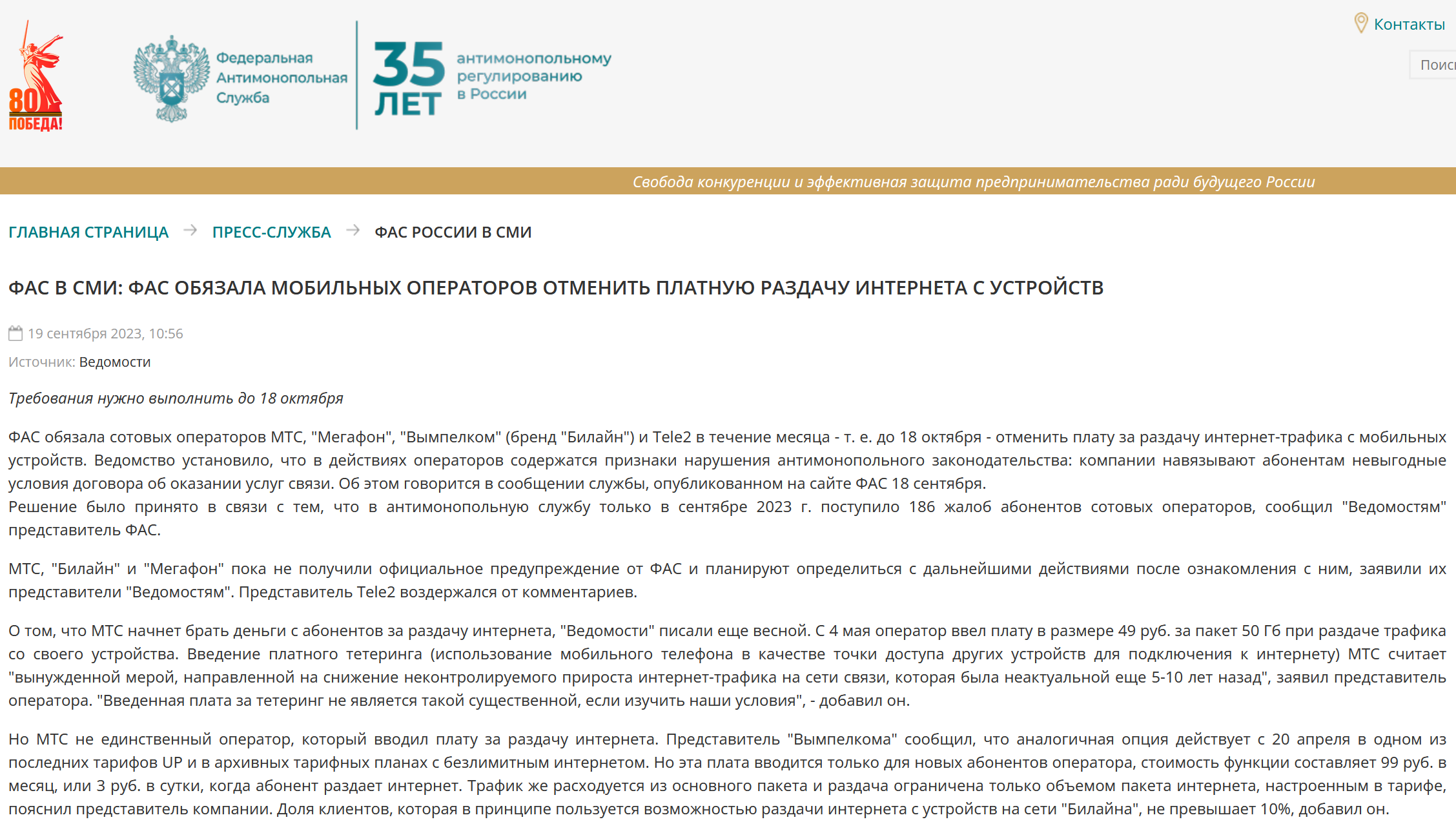 И вот в позапрошлом году вышло постановление, согласно которому мобильным операторам сказали, что дважды и трижды брать бабло за одно и то же имеет право только государство: https://fas.gov.ru/publications/24139